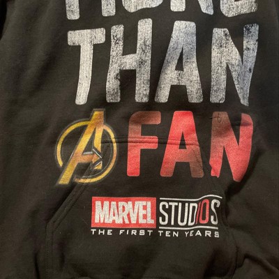 Men's Marvel 10th Anniversary More Than a Fan Pull Over Hoodie - 2 of 4Men's Marvel 10th Anniversary More Than a Fan Pull Over Hoodie - 3 of 4Men's Marvel 10th Anniversary More Than a Fan Pull Over Hoodie - 4 of 4
