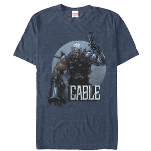 Despite his rough exterior, Cable is always trying to do the right thing and he is all about helping you get the Marvel Cable Battle Men's T-Shirt. The time traveling mutant, Cable, is shown with his name in distressed print on this cool Marvel tee.