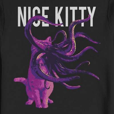 We're not flerken around about how awesome the Captain Marvel Goose Nice Kitty Men's Sweatshirt is! Captain Marvel's pet cat, Goose, is portrayed in purple print in her flerken alien form with "Nice Kitty" above in bold white text.