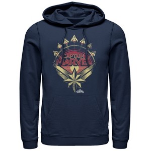 Men's Marvel Captain Marvel Retro Fighter Jet Plane Pull Over Hoodie - 1 of 3