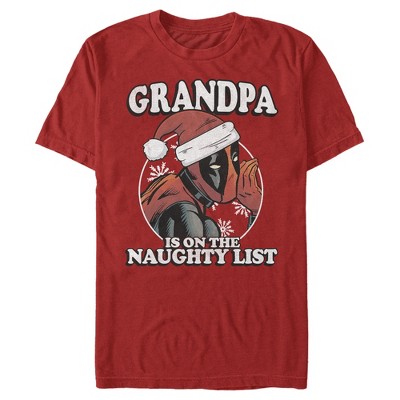 Men's Marvel Christmas Deadpool Grandpa on Naughty List T-Shirt