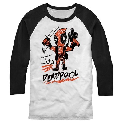 Men's Marvel Deadpool Number 1 Dad Drawing Baseball Tee