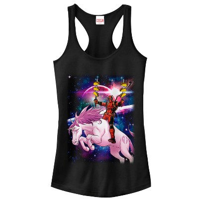 Lose yourself in the pages of a comic book or the movie adventure of a lifetime with all your favorite Marvel superheroes! This Marvel Deadpool Universe Taco Unicorn Men's Graphic T-Shirt features an awesome graphic of the iconic anti-hero, Deadpool, riding a unicorn in the outer space while holding his two swords with tacos impaled on them. Put in the maximum effort and get Marvel-ous with some awesome new officially licensed Marvel apparel for the entire family today!