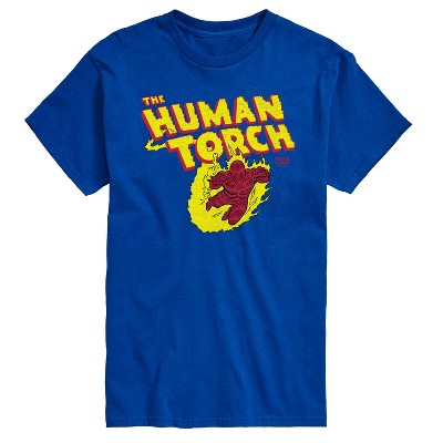 Men's Marvel Fantastic Four Human Torch Portrait Short Sleeve Graphic T-Shirt - Tahiti Blue - Large