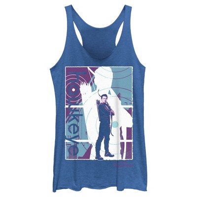 Show your allegiance to one of Marvel's amazing Avengers with the Marvel Hawkeye Classic Ready Aim Fire Heather Navy Blue T-Shirt. Get a vintage look on a brand new tee thanks to classic images of Clint Barton as Hawkeye printed on the front of this awesome Marvel shirt.