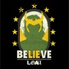 A cool green and gold silhouette of Loki is surrounded by stars above the word "Believe" and the Loki TV series logo across this Men's Tee.