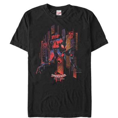Peter Parker is here to train you and Miles Morales on how to become the best superheroes possible! Head to an alternate universe to meet Miles, his family, Gwen Stacy, Spider-Ham and more with an awesome Marvel Spider-Man: Into the Spider-Verse Men's T-Shirt! Who knew that getting bitten by a spider in the Brooklyn subway could be this cool!? Help Miles master his new powers and defeat Kingpin today!