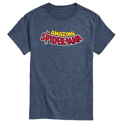 Men's Marvel Spiderman Editorial Logo Short Sleeve Graphic T-Shirt - Heather Blue - Small