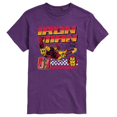 Men's Marvel Iron Man Stacked Name Oversized Short Sleeve Graphic T-Shirt - Purple - Large