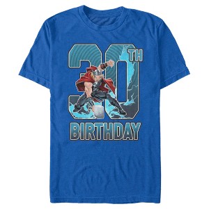 Celebrate your special day with your favorite comic book heroes as you party with your friends and family in style with this officially licensed graphic apparel from Marvel! Presenting the Thor Hammer 30th Birthday Men's Graphic T-Shirt featuring Thor in one of his iconic action poses and "30th Birthday" printed in blue lettering across the front. Grab one of these amazing Marvel shirts and stand out at your birthday bash this year!