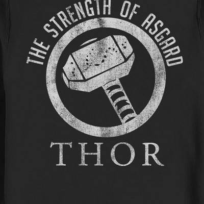 The Marvel Thor Strength of Asgard Men's Sweatshirt pays tribute to a superhero worthy of a spot in the Avengers: Thor! A distressed print on the front of this soft Thor sweatshirt reads "The Strength of Asgard Thor" around Mjolnir, Thor's incredible hammer.