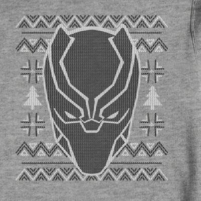 The Black Panther is ready for some eggnog and Christmas cookies with his Marvel Ugly Christmas Sweater Black Panther Mask Men's Sweatshirt. The Black Panther's mask is portrayed in a dot-style on this cool ugly Christmas sweater men's sweatshirt.