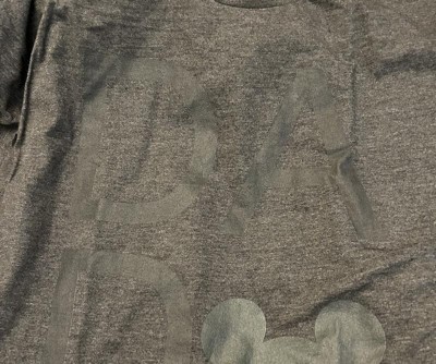 The shirt is darker than I expected. The Mickey head is very hard to see. In certain lighting, you can see the rectangle from when they pressed on the design. Maybe that’ll go away after washing, but not sure I’ll keep it.