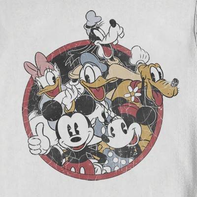 Who knew that dressing "mousey" could be so cute!? Celebrate Walt Disney's most iconic character with this officially licensed Mickey Mouse & Friends Retro Group Shot Men's Crewneck Sweatshirt, featuring a distressed graphic of Mickey, Minnie, Donald, Daisy, Goofy, and Pluto popping out of a circle. This graphic sweatshirt is perfect for the whole family, so grab one for yourself or a loved one today and get ready to pile on some mouse-eared pancakes while dressed for maximum bling!