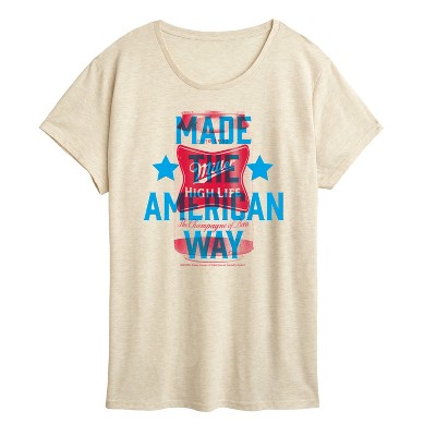 Miller High Life - Miller Made American - Men's Sleeveless Graphic Tank - Celebrate the champagne of beers with Miller High Life graphic apparel. Featuring the iconic red label and the "High Life" script, these designs embody the brand's legacy as a symbol of quality and tradition in American brewing.