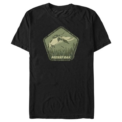 • Strut your stuff with this stylish new men's t-shirt that is perfect for every occasion! Featuring a 5-sided green polygon with a mallard getting ready to land and "Mossy Oak" printed in distressed lettering below.
