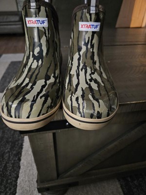 The Ankle Deck Boot collection, by XTRATUF, has a lightweight design with the same slip-resisting Chevron outsole found on the Legacy boot collection. These waterproof 6-inch men's boot, in Mossy Oak Bottomland camo print, has pull-tabs for placement. An SRA-rated, slip-resisting outsole composed of an an exclusive rubber compound grips the floor surface, providing sure footing. This boot is constructed with hand-layered rubber, and so not classified as an XTRATUF commercial grade boot. For those looking for a commercial grade ankle height deck boot please search for the XTRATUF Wheelhouse Boot.