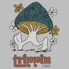 • Create a cool look with this men's tee featuring a mushroom walking through the forest with the phrase: "Trippin" below.