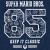 • Strut your stuff with this stylish new men's t-shirt that is perfect for every occasion! Featuring the text: "Super Mario Bros. 85 Keep It Classic" in distressed bold lettering across the front, complete with adorable graphics of Luigi, Mario, Princess Peach, Bowser, Goomba, Koopa Troopa, Toad, Blooper, and more.