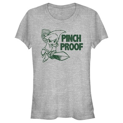It's dangerous to go alone on St. Patrick's Day, take this Nintendo Legend of Zelda Link Pinch Proof Men's Tee! Link is encircled by "Pinch Proof" on this funny Nintendo tee.