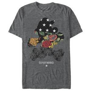 Mario is looking for something a little more stylish than the red jumpsuit and he's set his sights on the Nintendo Mario Ornate Pattern Men's T-Shirt! A silhouette of Mario is decorated in an artistic floral and star pattern on this unique Nintendo tee.