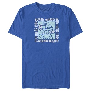 Let's explore the Mushroom Kingdom! Grab your overalls, pack your mushrooms, grab coins, use power-ups, break blocks, find secrets, and help Mario and his friends defeat the evil King Koopa and rescue the princess with this new officially licensed Men's Nintendo Super Mario Bros. Retro Jumping Pose Graphic T-Shirt! This unique tee features a distressed blue design of Mario happily jumping with a mushroom, framed by the words: "Super Mario Brothers 1985" across the front. Grab this amazing tee today and lets-a-go on this adventure!