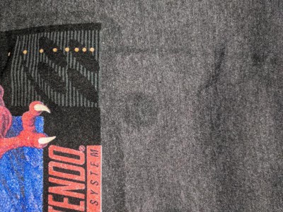 There are greasy sticky stains on the collar and under the Metroid image. It's not hard to see the stains, I'm not sure why this was shipped out.