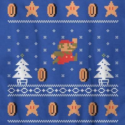 Who's that mustached man in a red suit? Santa? Nope, it's Mario on the Nintendo Mario Coin Ugly Christmas Sweater Men's Sweatshirt! Mario from Super Mario Bros for NES leaps across the front of this Nintendo Christmas sweatshirt surrounded by an ugly Christmas sweater style print.