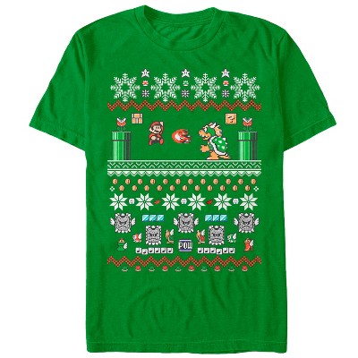 Men's Nintendo Ugly Christmas Mario Jump Star T-Shirt - Kelly Green - X Large