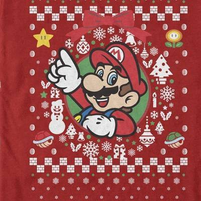Now gamers can get in the holiday spirit with the Nintendo Mario Wreath Ugly Sweater Men's Tee! Shop festive holiday graphic tees featuring Mario, Donkey Kong, Link, Zelda, and all your favorite Nintendo characters.