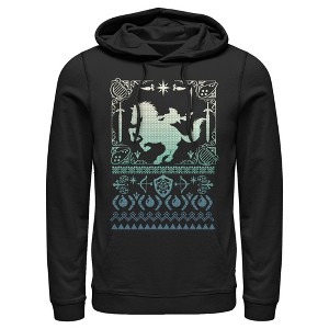 • Strut your stuff with this stylish new men's pullover hoodie that is perfect for the holidays! Featuring a fun ugly Christmas sweater-inspired design with the silhouette of Link rearing up on his steed, swords, arrows, shields, and more printed across the front.