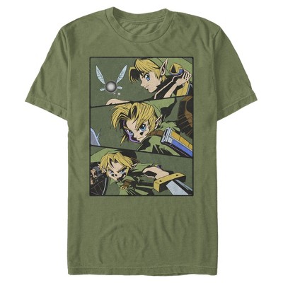 Men's Nintendo Zelda Anime Comic Strip T-Shirt - Military Green - Medium