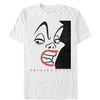• Strut your stuff with this stylish new men's t-shirt that is perfect for every occasion! Featuring the face of crazy-eyed Cruella de Vil printed across the front.