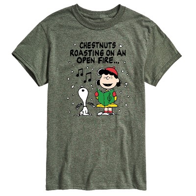 Peanuts - Snoopy Santa Christmas - Men's Short Sleeve Graphic T-Shirt - From the best-loved comic strip in history comes officially licensed PEANUTS apparel for fans everywhere. Show your love for Charlie Brown, Snoopy, Woodstock, Lucy, Linus, Pigpen and the whole gang. Copyright Peanuts.