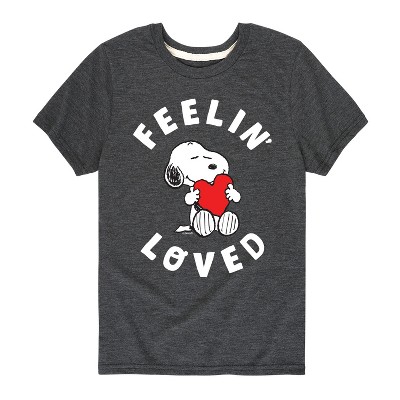 Peanuts - Feelin Loved - Men's Short Sleeve Graphic T-Shirt - From the best-loved comic strip in history comes officially licensed PEANUTS apparel for fans everywhere. Show your love for Charlie Brown, Snoopy, Woodstock, Lucy, Linus, Pigpen and the whole gang. Copyright Peanuts.