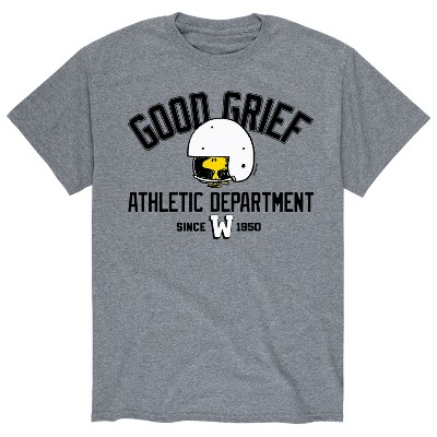 Peanuts - Good Grief Academy - Men's Short Sleeve Graphic T-Shirt - From the best-loved comic strip in history comes officially licensed PEANUTS apparel for fans everywhere. Show your love for Charlie Brown, Snoopy, Woodstock, Lucy, Linus, Pigpen and the whole gang. Copyright Peanuts.