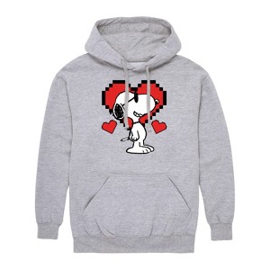 Men's - Peanuts - Cool Snoopy Pixel Hearts Graphic Fleece Pullover Hoodie - 1 of 4