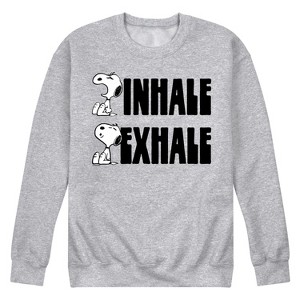 Peanuts - Snoopy Inhale Exhale - Men's Crew Neck Fleece Pullover - From the best-loved comic strip in history comes officially licensed PEANUTS apparel for fans everywhere. Show your love for Charlie Brown, Snoopy, Woodstock, Lucy, Linus, Pigpen and the whole gang. Copyright Peanuts.