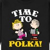 Peanuts - Time To Polka - Men's Crew Neck Fleece Pullover - From the best-loved comic strip in history comes officially licensed PEANUTS apparel for fans everywhere. Show your love for Charlie Brown, Snoopy, Woodstock, Lucy, Linus, Pigpen and the whole gang. Copyright Peanuts.