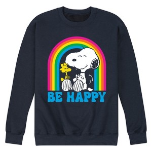Men's - Peanuts - Be Happy Rainbow Graphic Fleece Sweatshirt - 1 of 4