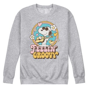 Men's - Peanuts - Feelin Groovy Snoopy And Woodstock Graphic Fleece Sweatshirt - 1 of 4