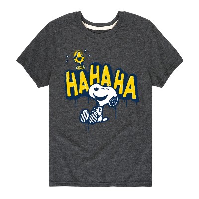 Peanuts - Ha Ha Graffiti - Men's Long Sleeve T-Shirt - From the best-loved comic strip in history comes officially licensed PEANUTS apparel for fans everywhere. Show your love for Charlie Brown, Snoopy, Woodstock, Lucy, Linus, Pigpen and the whole gang. Copyright Peanuts.