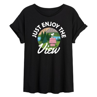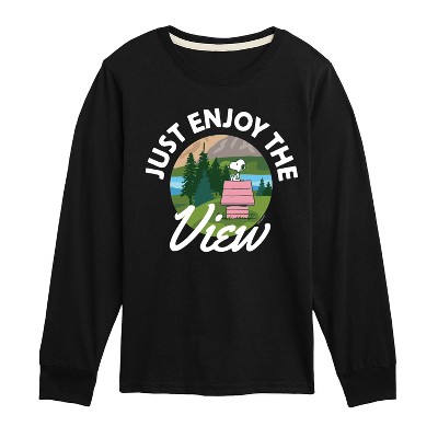 Peanuts - Just Enjoy The View - Men's Long Sleeve T-Shirt - From the best-loved comic strip in history comes officially licensed PEANUTS apparel for fans everywhere. Show your love for Charlie Brown, Snoopy, Woodstock, Lucy, Linus, Pigpen and the whole gang. Copyright Peanuts.