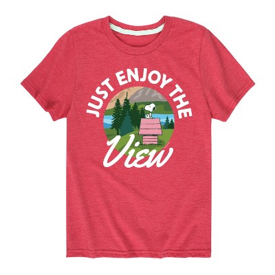 Peanuts - Just Enjoy The View - Men's Long Sleeve T-Shirt - From the best-loved comic strip in history comes officially licensed PEANUTS apparel for fans everywhere. Show your love for Charlie Brown, Snoopy, Woodstock, Lucy, Linus, Pigpen and the whole gang. Copyright Peanuts.