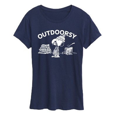 Peanuts - Outdoorsy Snoopy - Men's Short Sleeve Graphic T-Shirt - From the best-loved comic strip in history comes officially licensed PEANUTS apparel for fans everywhere. Show your love for Charlie Brown, Snoopy, Woodstock, Lucy, Linus, Pigpen and the whole gang. Copyright Peanuts.