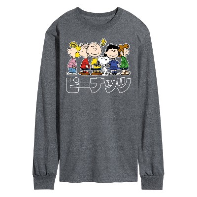 Men's Peanuts Peanuts Crew Athletic Long Sleeve Graphic T-Shirt - Heather Charcoal - 3 X-Large