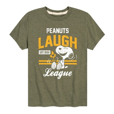 Peanuts - Peanuts Laugh League - Men's Short Sleeve Graphic T-Shirt - From the best-loved comic strip in history comes officially licensed PEANUTS apparel for fans everywhere. Show your love for Charlie Brown, Snoopy, Woodstock, Lucy, Linus, Pigpen and the whole gang. Copyright Peanuts.