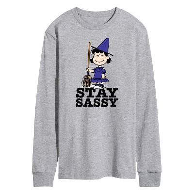 Peanuts - Say Candy Art - Men's Long Sleeve T-Shirt - From the best-loved comic strip in history comes officially licensed PEANUTS apparel for fans everywhere. Show your love for Charlie Brown, Snoopy, Woodstock, Lucy, Linus, Pigpen and the whole gang. Copyright Peanuts.