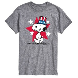 Peanuts - Patriotic American Snoopy - 4th of July - Men's Short Sleeve Graphic T-Shirt - From the best-loved comic strip in history comes officially licensed PEANUTS apparel for fans everywhere. Show your love for Charlie Brown, Snoopy, Woodstock, Lucy, Linus, Pigpen and the whole gang. Copyright Peanuts.