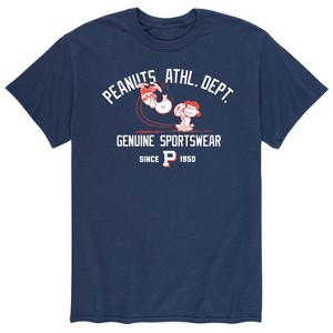 Peanuts - Athletic Department - Men's Short Sleeve Graphic T-Shirt - From the best-loved comic strip in history comes officially licensed PEANUTS apparel for fans everywhere. Show your love for Charlie Brown, Snoopy, Woodstock, Lucy, Linus, Pigpen and the whole gang. Copyright Peanuts.